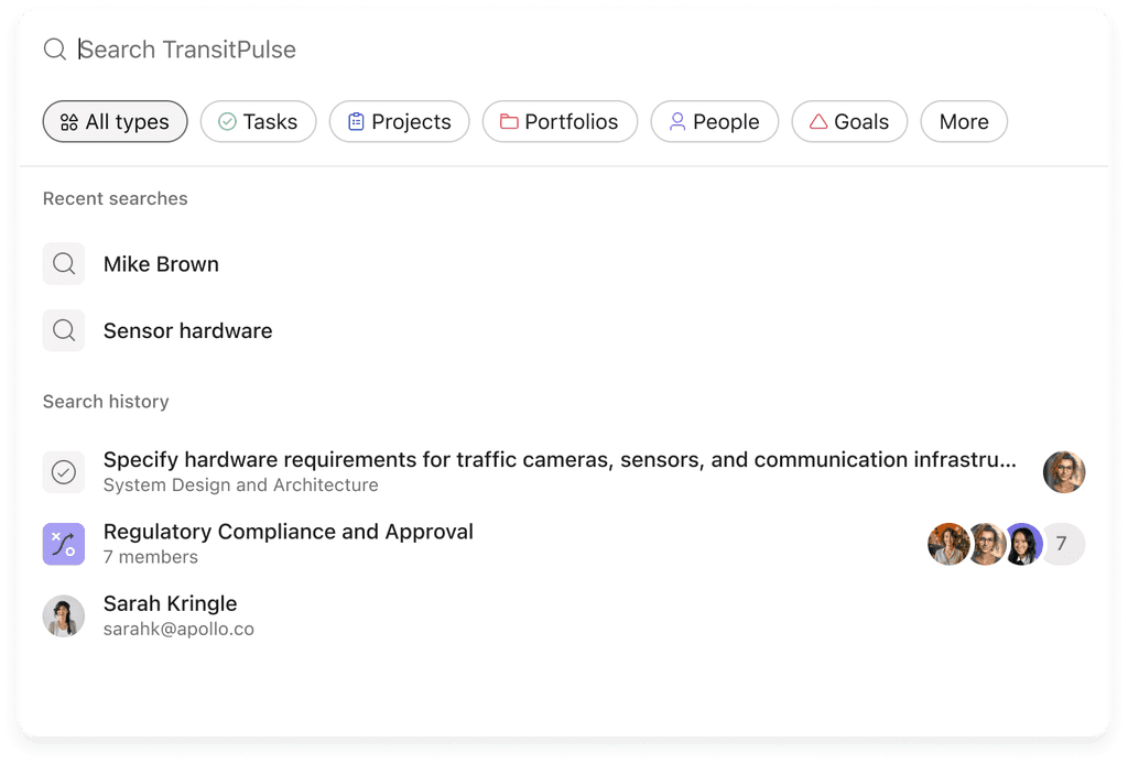 Search at Asana hadn’t been updated in years, leading to a clunky, inconsistent experience. I explored a new direction for both basic search and results—modernizing the UI, improving usability, and integrating early AI concepts.